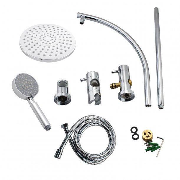 Add this 8 inch Round Shower Set with 5 Function Handheld Spray Head to your bathroom collection today! The shower rail is made of solid brass with an all chrome finish.This round shower set can match with any bathroom look.