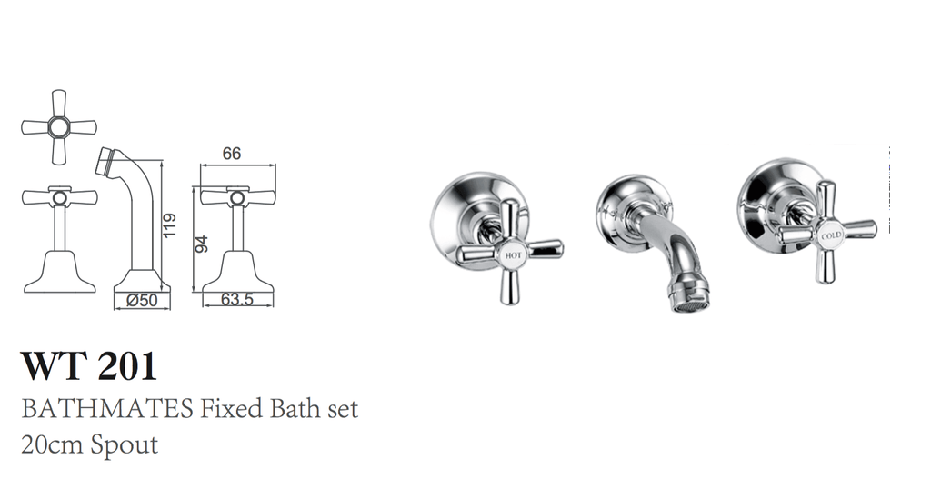 BATHMATES FIXED BATH SET 20CM SPOUT.