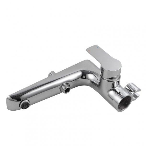 This bath spout is unique in it's design. The freestanding spout is attached to the floor, making it a perfect pairing with one of our free standing baths. There is a knob to divert water to either tub spout or hand shower. The handheld shower allows for easy washing of your hair and cleaning of the whole bath, let you control over the direction of the water. Being a floor mounted spout it allows you to put it anywhere next to the bathtub, while at the same time your walls can remain clutter free. The chrome finish allows for the tap to stand out in your bathroom.