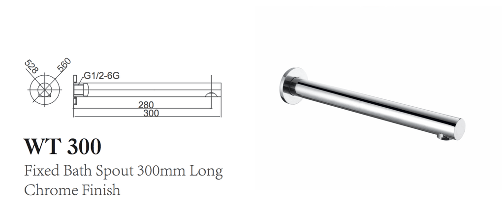 JAMIE FIXED BATH SPOUT 300mm LONG CHROME FINISH
