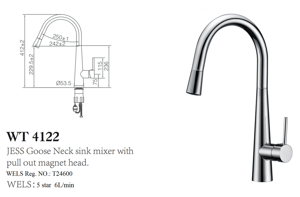 JESS GOOSE NECK SINK MIXER WITH PULL PUT MAGNET HEAD