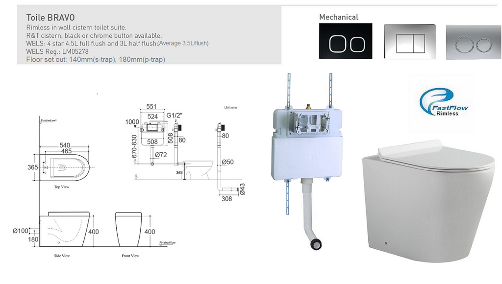 RIMLESS IN WALL CISTERN TOILET SUIT