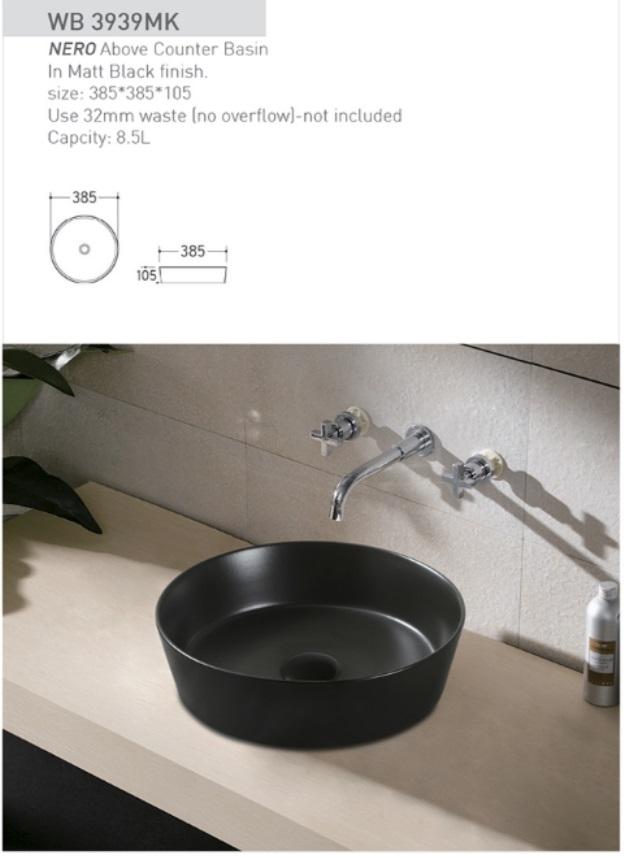 • NERO ABOVE COUNTER BASIN IN MATT BLACK FINISH