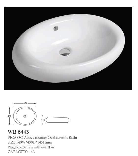• PICASSO ABOVE COUNTER OVAL CERAMIC BASIN