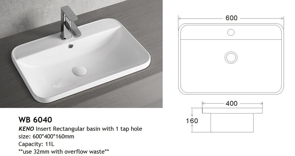 • KENO INSERT RECTANGULAR BASIN WITH 1 TAP HOLE